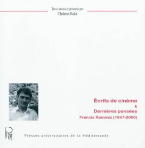 Cet ouvrage qui réunit les écrits de cinéma et les dernières pensées de Francis Ramirez manifeste de façon éclatante son intelligence critique et son ouverture d'esprit, non seulement dans le champ cinématographique mais encore dans celui de la littérature reliée au monde du septième art. Le premier chapitre du livre en témoigne plus particulièrement, mais les chapitres suivants apportent aussi des éclairages neufs à la question toujours débattue des rapports entre le cinéma et la littérature. C'est assez dire que ce volume ne s'adresse pas aux seuls spécialistes de cinéma. Francis Ramirez, qui contribua régulièrement aux activités du Centre d'études du XXe siècle, en fut l'un des membres les plus actifs. Ses contributions étaient d'une qualité peu commune et l'on retrouvera avec bonheur, ici notamment, ses articles sur le cinéma comique et sur le cinéma de Jean Cocteau dont il fut, avec Christian Rolot, l'un des meilleurs spécialistes. Invité à prendre part aux activités du même centre de recherches, il fut un participant remarqué aux différentes manifestations organisées sous les auspices de Cocteau, à Montpellier, à Paris ou à Toronto. Et l'on entend encore sa voix, nette et chaleureuse, mise au service des causes esthétiques qu'il défendait avec alacrité et une conviction que son immense talent pédagogique savait faire partager. L'hommage que le Centre d'études du xxe siècle veut lui rendre en publiant ces écrits et ces dernières pensées est bien modeste au regard de tout ce que Francis Ramirez nous a apporté, mais on se plaît à penser qu'une trace durable de ses recherches se voit ainsi proposée à ceux qui ont eu le privilège de le rencontrer aussi bien qu'à ceux qui, par chance, vont découvrir une plume brillante, jamais jargonnante, et une pensée qui, pour être souvent fort subtile, ne tombe jamais dans l'hermétisme.