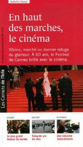 film et deuxième événement médiatique mondial. Le 60e anniversaire du Festival est prétexte à une analyse de l'évolution du septième art. Du cinéma réaliste de l'après-guerre au cinéma militant des années 1970, des productions nationales à petit budget aux superproductions hollywoodiennes, de la nouvelle vague au numérique. Rencontre de l'art, du rêve et de l'industrie. Pour comprendre, nous faisons le point : l'évolution du cinéma au cours de ces soixante années au travers de la fenêtre cannoise ; les grandes tendances; les grands auteurs; le cinéma politique et la censure; les grandes polémiques; le cinéma international luttant pour sa survie; les superproductions toujours plus chères; la révolution numérique...